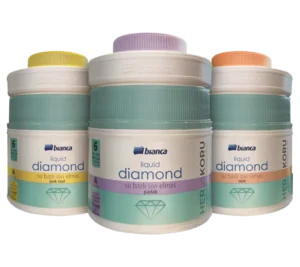 Bianca Liquid Diamond (Sıvı Elmas) uygulaması yapılacak yüzeyler; her türlü kir, yağ ve tozdan, eski boya kalıntılarından arındırılmış temiz ve kuru olmalıdır. Bianca Liquid Diamond (Sıvı Elmas) iki kompenentli bir üründür. Uygulama için A kompenenti (büyük amb.) ile B kompenenti (küçük amb.) karıştırınız. Yapılan karışımı 4-6 saat içinde kadife vernik rulo yardımı ile yayarak uygulayınız. Kuruyan noktalarda tekrar fırça ve rulo darbesi yapmamaya özen gösterin.